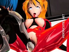 Hentai 3d babe gets double penetrated by shemales