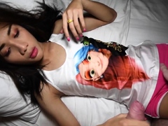 Lesbian bigtitted shemale seduces lusty 19yo lesbian