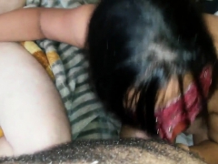 20 yr. old Brazilian slut calls BF while choking on my cock