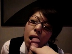 Japanese glasses girl blowjob and fuck