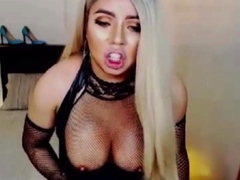 Sexy shemale jerks off her big huge cock