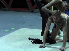 Ty playing hard as he is tied up and flogged