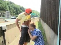 Amateur twink orally pleasures his horny friends outdoor