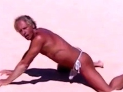 Tanned guy on beach in tiny string thong (temporarily!)