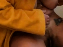 my wife shaving her pussy… Big nipples!